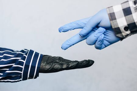 Black lives matter. Close up photo of a hand gestures between afroamerican and european hands.