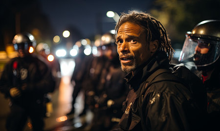 Riot Police handling protesters during demonstrations. Generative AI