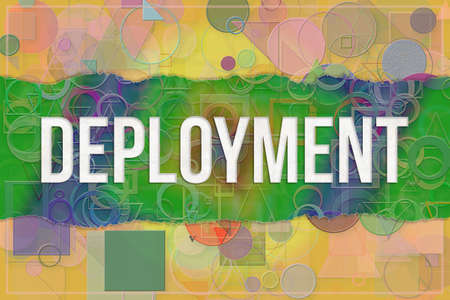 Deployment, information technology conceptual words with colorful shapes pattern as background for web page, graphic design, catalog or wallpaper.