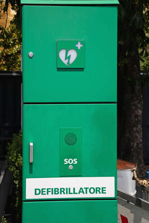 Station of an automated external defibrillator (AED) in an Italian town (Lecco)