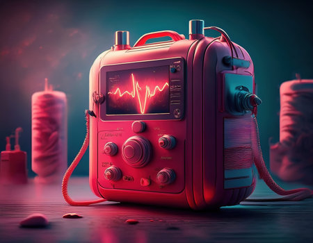 An advanced medical device showcasing a heartbeat pattern illuminates a dimly lit room, creating an atmosphere of clinical importance and safety.