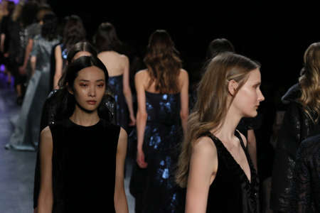 NEW YORK, NY - FEBRUARY 13: Models walk the runway at the Monique Lhuillier fashion show during MBFW Fall 2015 at Lincoln Center on February 13, 2015 in NYC