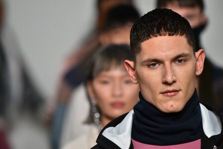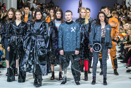 MOSCOW, RUSSIA - MARCH 26, 2017: Model walk runway for DANIIL LANDAR catwalk at Autumn-Winter 2017-2018 Moscow Fashion Week. Men's fashion