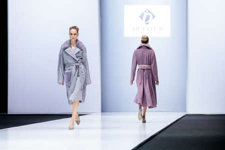 MOSCOW, RUSSIA - MARCH 21, 2019: Model walk runway for DUETFUR CRIMEAN FUR FACTORY catwalk at Autumn-Winter 2019-2020 Moscow Fashion Week.