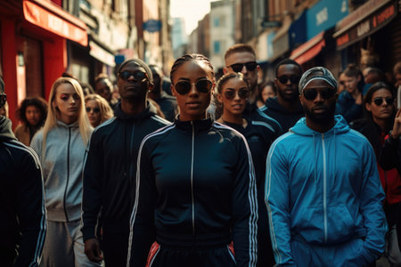 Intimate photo of a group of people lost in the crowds of the city. Generative AI