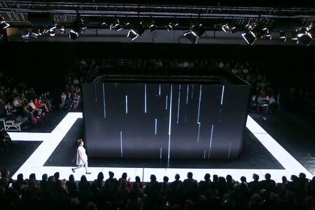 MOSCOW, RUSSIA - MARCH 26, 2017: Model walk runway for ANNETTE HOFFMANN catwalk at Autumn-Winter 2017-2018 Moscow Fashion Week.