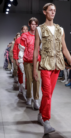 NEW YORK, NY - FEBRUARY 01: Models walk the runway finale at Concept Korea's Ordinary People 2016 F/W Collection during New York Fashion Week Men's Fall/Winter 2016 at Pier 59 Studios on February 1, 2016 in New York City.