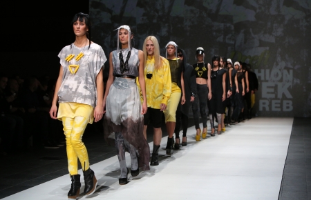 ZAGREB,CROATIA - JUNE 3,2016 : Models wearing collection Marka Vintage Glamour Pounje designed by Marija Cvitanovic on the Fashion Week Zagreb fashion show in the Green Gold Centre in Zagreb,Croatia.