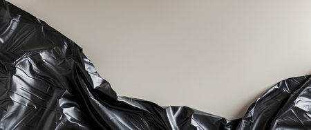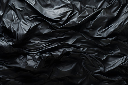 Garbage bag closeup, black crumpled plastic wall as wallpaper, overhead shot