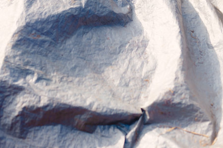 An abstract image of a textured tarp surface. The image showcases the folds and creases in the material, creating a dynamic and interesting pattern. The subtle interplay of light and shadow