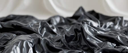 AI Generated. Textured black plastic wrinkled surface for modern design backgrounds