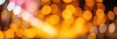 Blurred lights abstract background, banner texture. Holiday defocused bokeh header. Wide screen wallpaper. Panoramic web banner with copy space for design