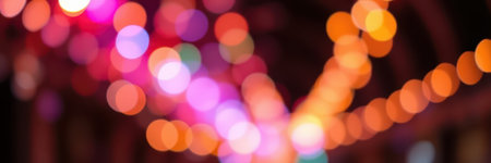 Colorful bokeh lights create a festive atmosphere during a nighttime celebration