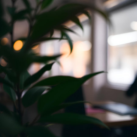 Blurred background of a beautiful green plant in a coffee shop.