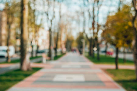 Green city park. Yello alley bokeh background
