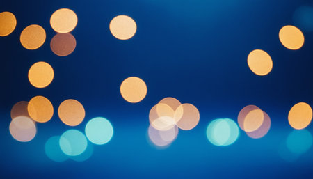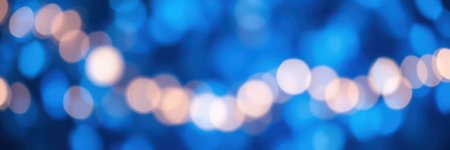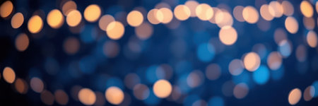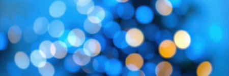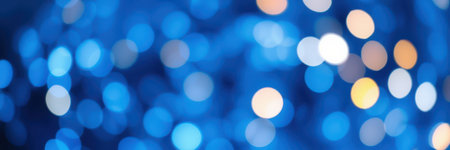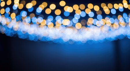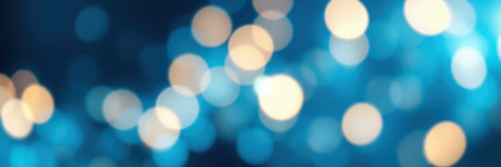 Shimmering blue and gold lights create a dreamy bokeh background for festive celebrations and events