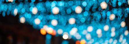 New Year's lights on the street, bokeh, background, mockup