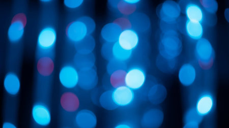 Vibrant blue bokeh lights create a mesmerizing effect in a dark environment