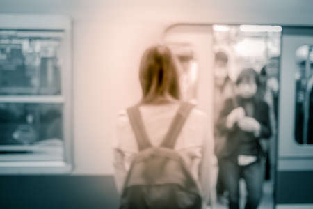 City commuters. High key blurred image of workers going back home after work. Unrecognizable faces, bleached effect.