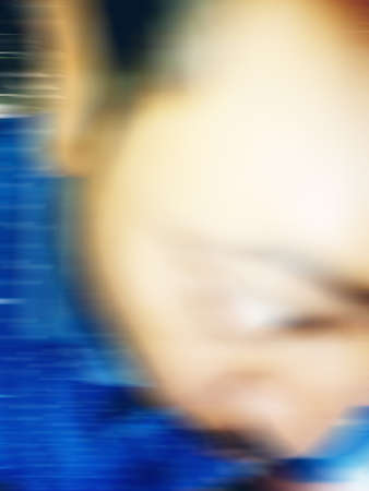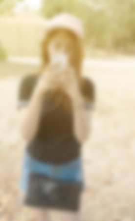 Blur effect of young asian woman relaxing outdoors looking happy and smiling