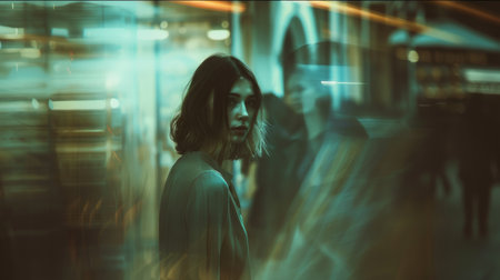 Blurry motion silhouette of a girl with long hair. ai generative.