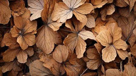 Dry leaves scattered on ground create a textured display of brown hues and natural beauty