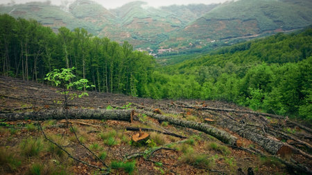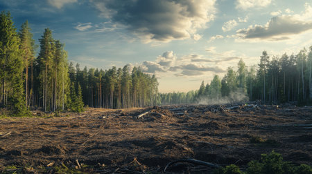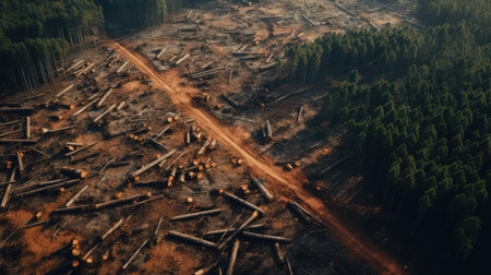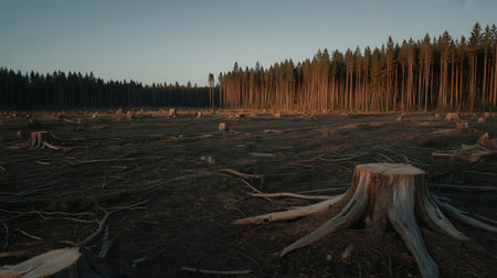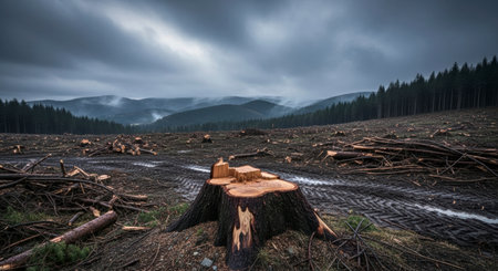 Deforestation aftermath a desolate landscape of tree stumps and felled trees