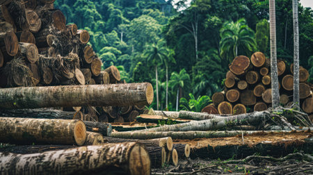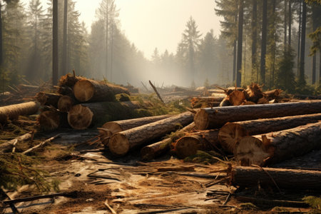 clear-cut forest, with trees cut down and left on the ground, created with generative ai