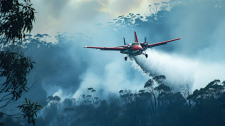Firefighter Helicopter Dropping Sea Water on a Fire over tropical forest.