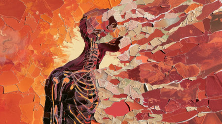 A collage of torn paper pieces each one representing a different part of the human body come together to form an abstract human figure showcasing the connection between the physica