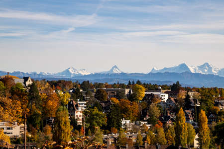 Bern Switzerland - 10.25.2020 View over Bern in the Autumn with the Alps in the background