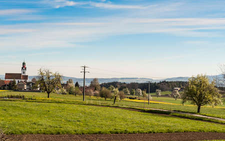 Panoramic view of idyllic rural landscape with church in Germany