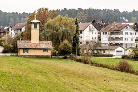 village Wolfschlugen in Germany in late summer with view to the Suabian Alb