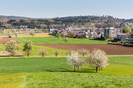 View to the village of Fislisbach and the fields arround, Switzerland