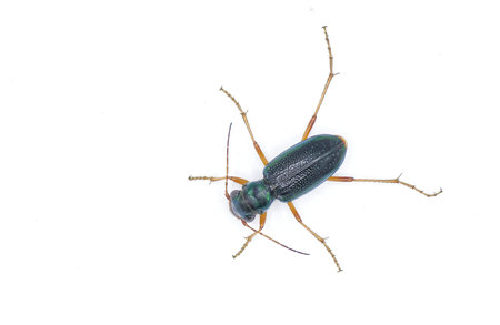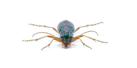 Virginia metallic big headed tiger beetle - Tetracha virginica - found in North and Central America, characterized by its metallic green color and is the largest tiger beetle. Isolated on white
