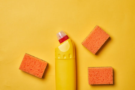 detergent bottle on bright yellow background. place for text