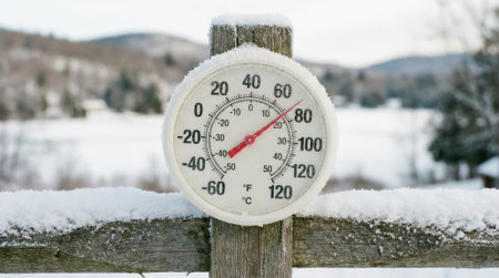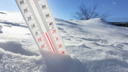 Thermometer in the snow shows low temperature