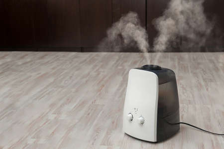 Modern air humidifier. Humidifier spreading steam into the living room