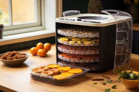 Drying electric machine home device. Raw cut vitamin food dried. Generate Ai