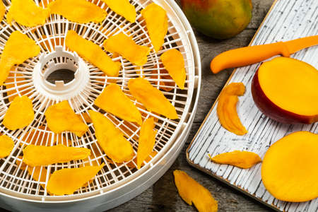 Dried Mango Fruit made with Dehydrator. Selective focus.