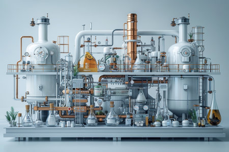 AI generated molecular catalyst wind-tunnel with a hologram enzyme activation cycle. Perfect for scientific research, technology, and innovation themes. Clean and detailed with realistic