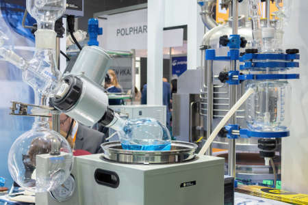 Moscow, Russia - November 21, 2018: Pharmtech and Ingredients 2018 Exhibition. Rotary evaporator