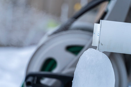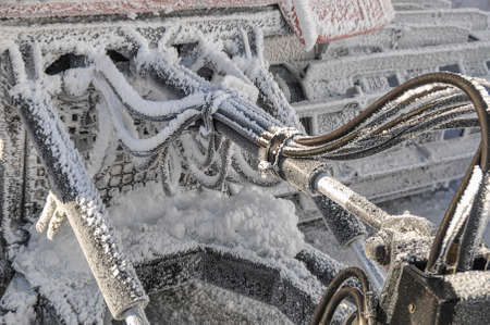 Frozen pipes and valves on high pressure nitrogen tank in a science lab 2020