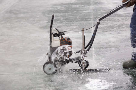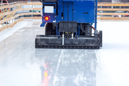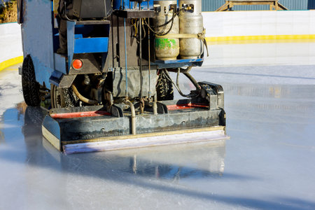 special machine for cleaning ice on an ice rink. transport industry. street ice rink service