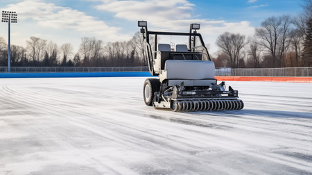 Ice resurfacing machine smoothens skating rink with precision and efficiency, ensuring a perfectly groomed surface for optimal skating performance.AI Generated