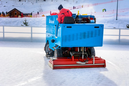 Ice resurfacing machine ,Ice resurfacer, resurfacing the ice rink in the central park of the town