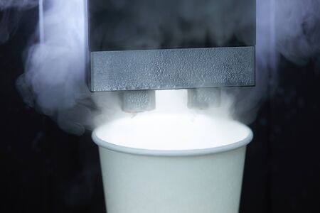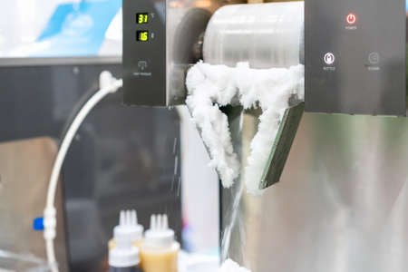 chose up chute of automatic bingsu machine during making ice flake or snowflake (asian or korean dessert)