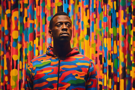 Portrait of a young african american man in sportswear against the background of a colored wall.