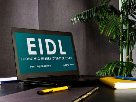 Laptop with Economic Injury Disaster Loan EIDL information.