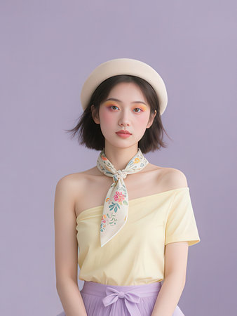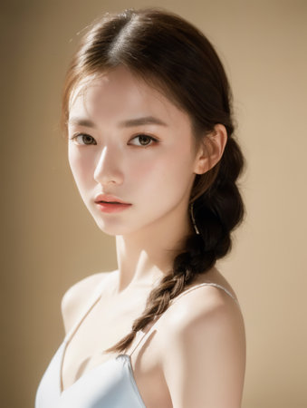 beautiful young Korean Asian woman portrait studio photo in winter skin beauty and cosmetics concept__holding bay's breath